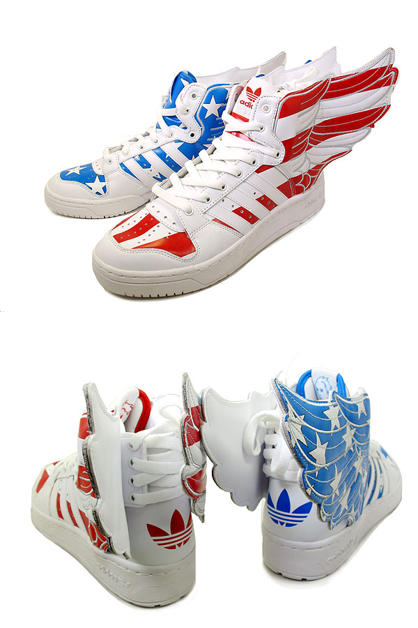 各界の様々なクリエーターとのコラボレーションにより誕生する、新プロジェクトアディダス オリジナルスより、アメリカ出身の鬼才Jeremy Scott(ジェレミー・スコット)が手掛けた「2012 S/S コレクション」が登場。80年代後半アディダスのバスケットボールシューズ、コンダクター(Conductor)をベースに、インパクト抜群のWING(羽)を付け、全面に左右でブルーとレッドカラーに分けられた星条旗のデザインを落とし込んだインパクト抜群の1足。ジェレミー スコットの持つ独創的かつ奇抜なデザインが、全面に打ち出されています。左右アシンメトリーにアメリカ国旗が羽ばたいています。 ⇒adidas ObyO×Jeremy Scott JS WINGS 2.0 WINGS 2.0WHITE/BLUE/RED V24619の値段をチェックする |